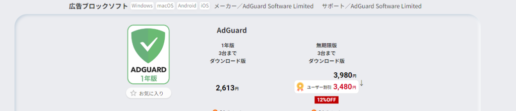YouTube Premiumを1年間契約する料金で、AdGuardは4年以上ご利用できます。