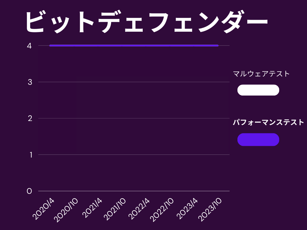 | ビットデェフェンダー | 20/4 | 20/10 | 21/4 | 21/10 | 22/4 | 22/10 | 23/4 | 23/10 |
