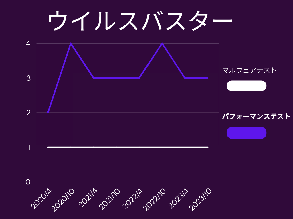 | ウイルスバスター | 20/4 | 20/10 | 21/4 | 21/10 | 22/4 | 22/10 | 23/4 | 23/10 |