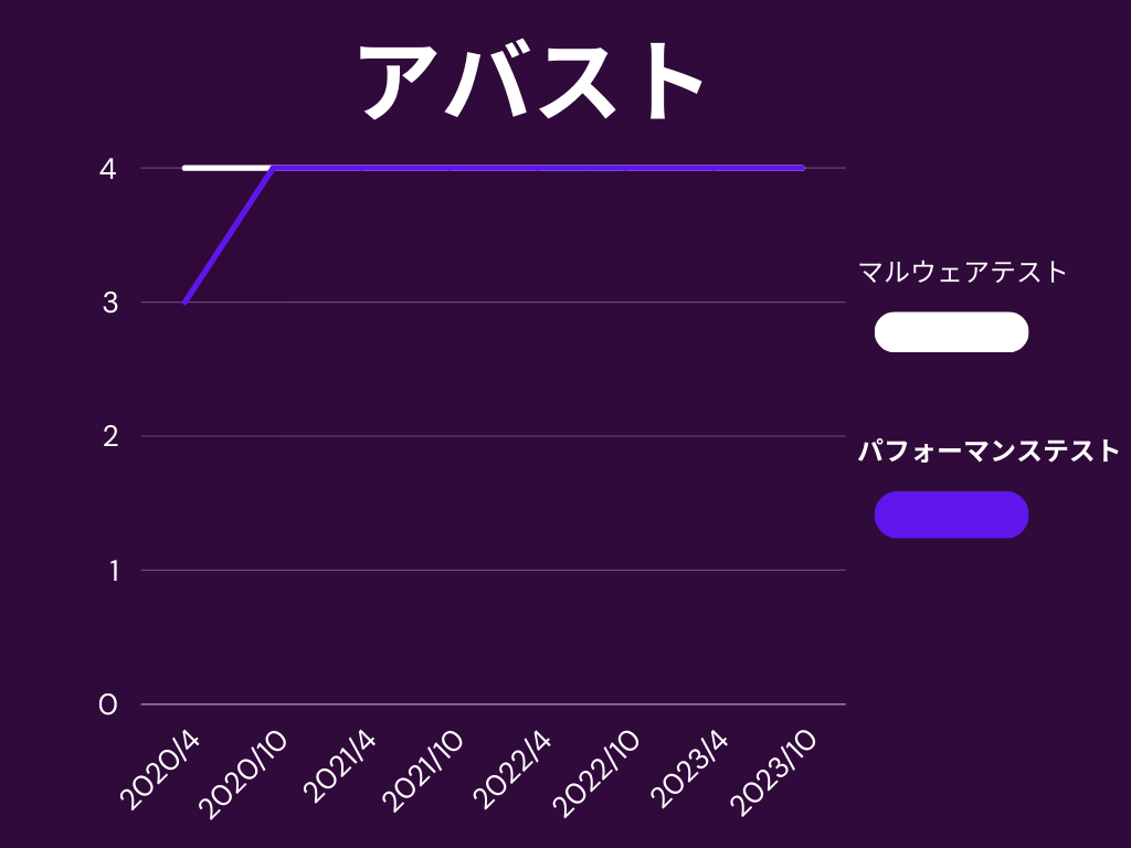| アバスト | 20/4 | 20/10 | 21/4 | 21/10 | 22/4 | 22/10 | 23/4 | 23/10 |