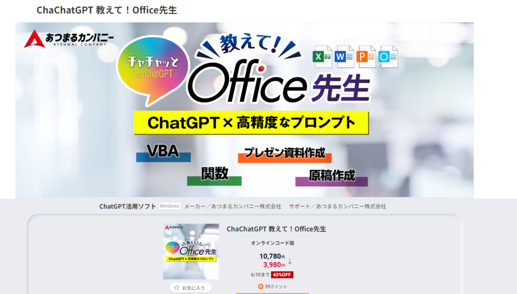 [6/10まで63%OFF] ChaChatGPT 教えて!Office先生