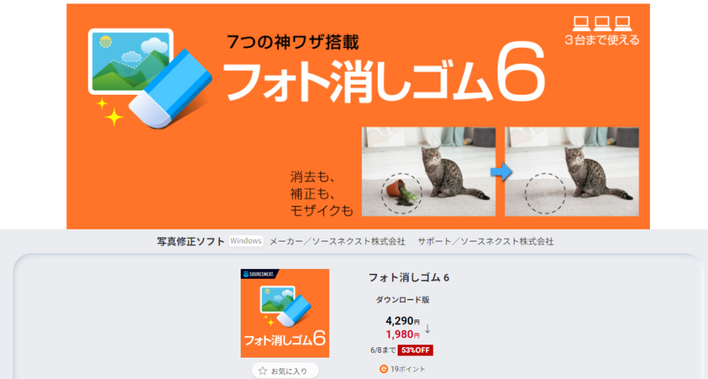 [6/8まで53%OFF] 写真の不要な部分に「フォト消しゴム 6」