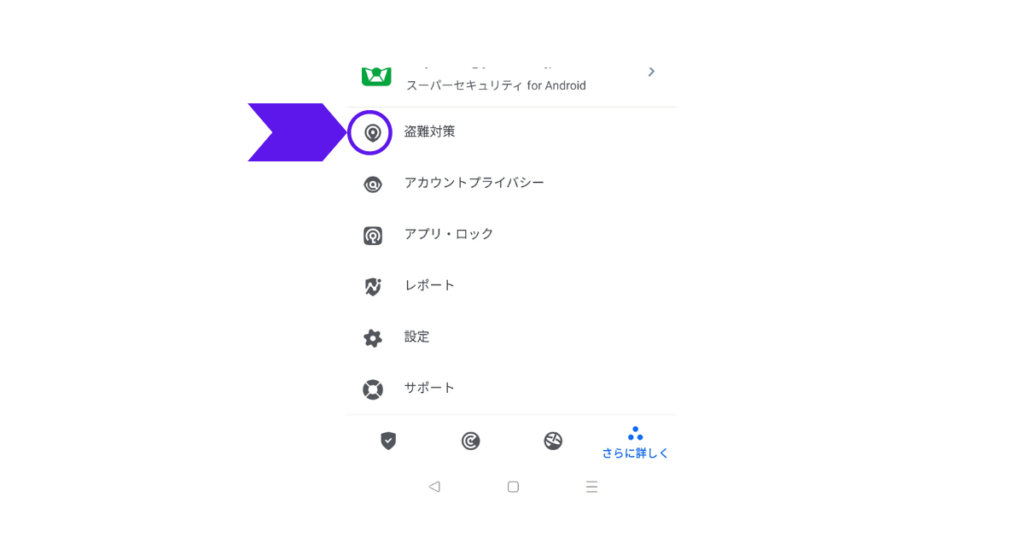 • 自分でスマホにZEROスーパーセキュリティがインストールされていたら、「盗難対策」→「リモートコマンド」から相手のスマホを検索できます。