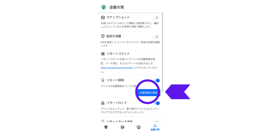リモート検知の位置情報確認を押します。