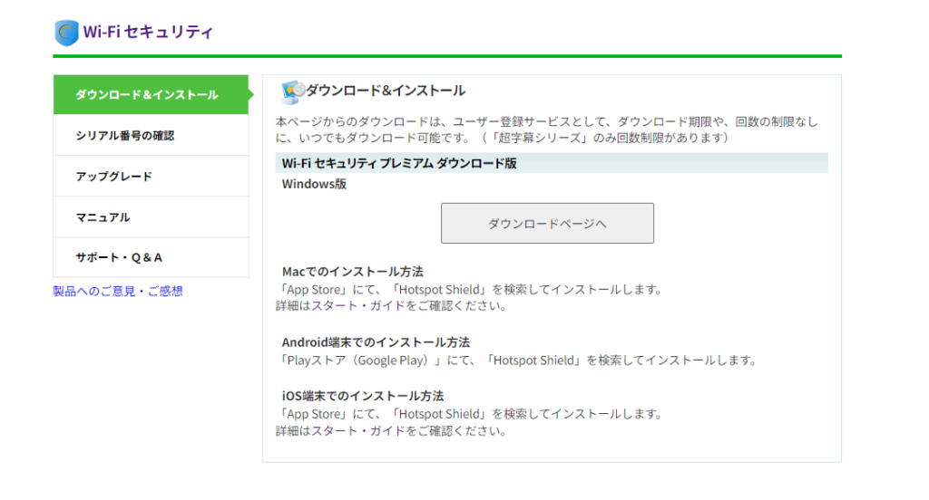 ①ソースネクストのマイページ・お持ちの製品一覧からWi-Fiセキュリティを選んでダウンロードをします。