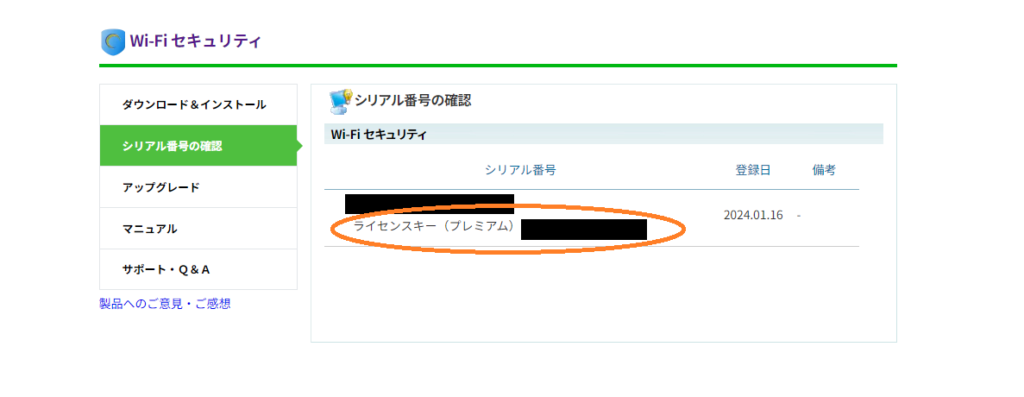 シリアル番号ではないぞ。ソースネクストのマイページ・お持ちの製品一覧からWi-Fiセキュリティから確認してくれ。