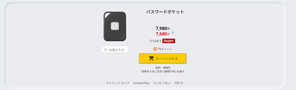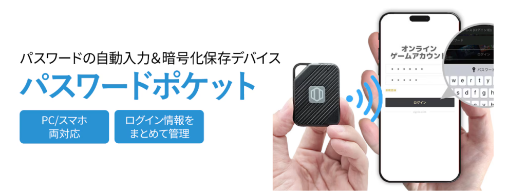 - 製品名PasswordPocket(パスポケ)型番AR CP001(BK)重量9g (電池を除く)外形寸法36.6×48.6×7mm対応スマートフォン・iPhoneの場合