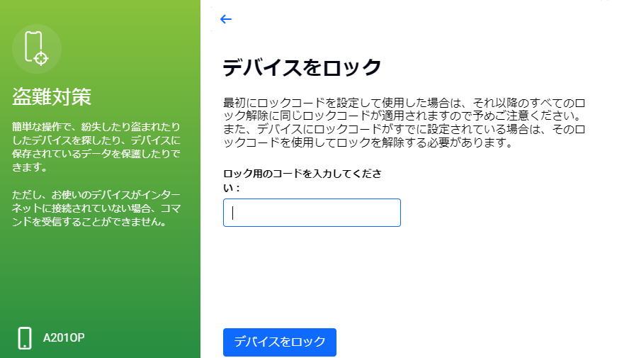 - リモートロック:デバイスをロックしてアクセスできないようにする