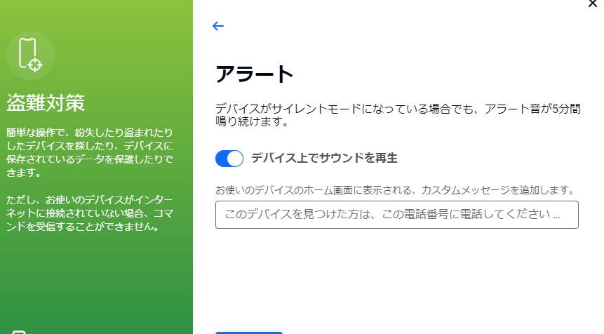 デバイスで盗難対策設定できる項目